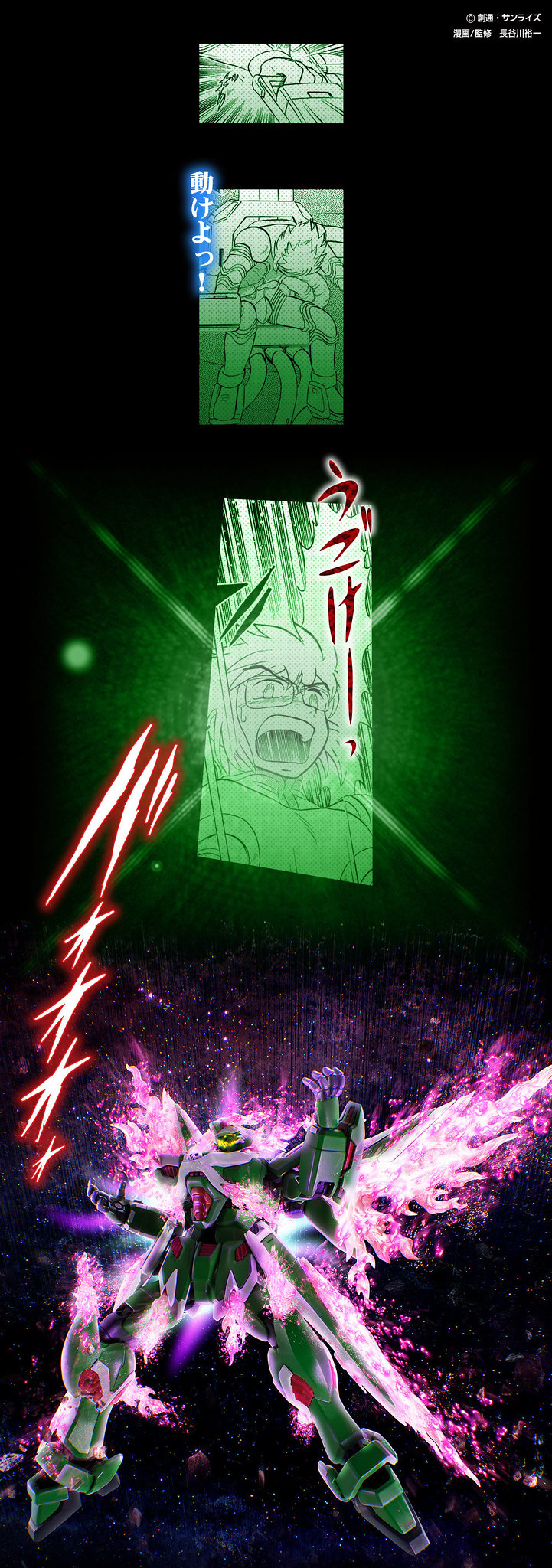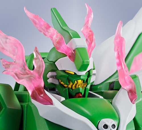 「ROBOT魂 幽靈鋼彈由原作長谷川裕一老師監修,造型大幅還原漫畫中的形象。配件中附有大量「幽靈光」特效零件呈現米諾夫斯基粒子過剩噴發的狀態,以及雙手展開的 I 力場特效零件、再現強制散熱場景的「冷卻劑箱拋出特效」、二階段強制散熱模式「頭部零件」。