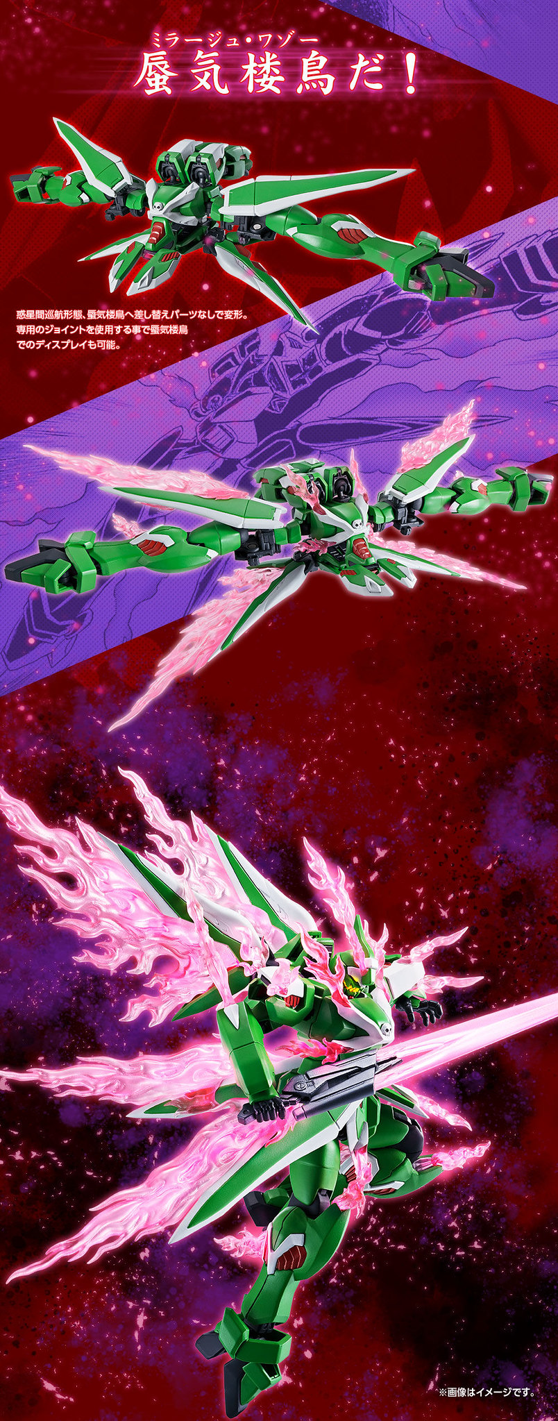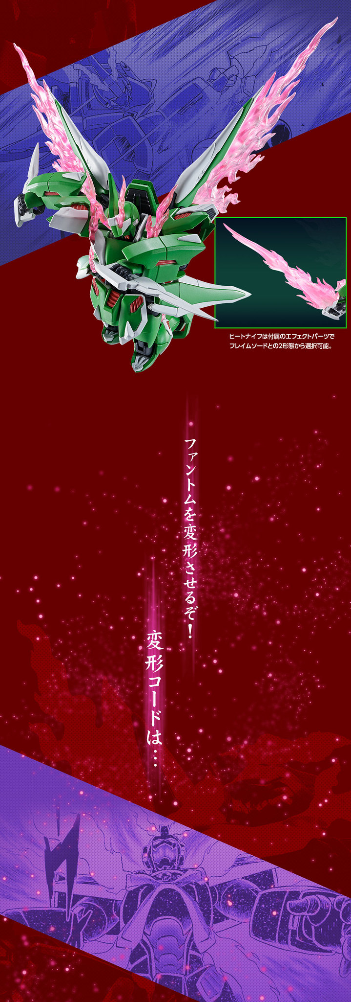 武裝部份收錄可再現槍/劍模式的蝴蝶破壞槍、可裝上「烈焰劍特效」的左右熱能刀,使用替換零件更能再現巡航型態「蜃氣樓鳥」!
