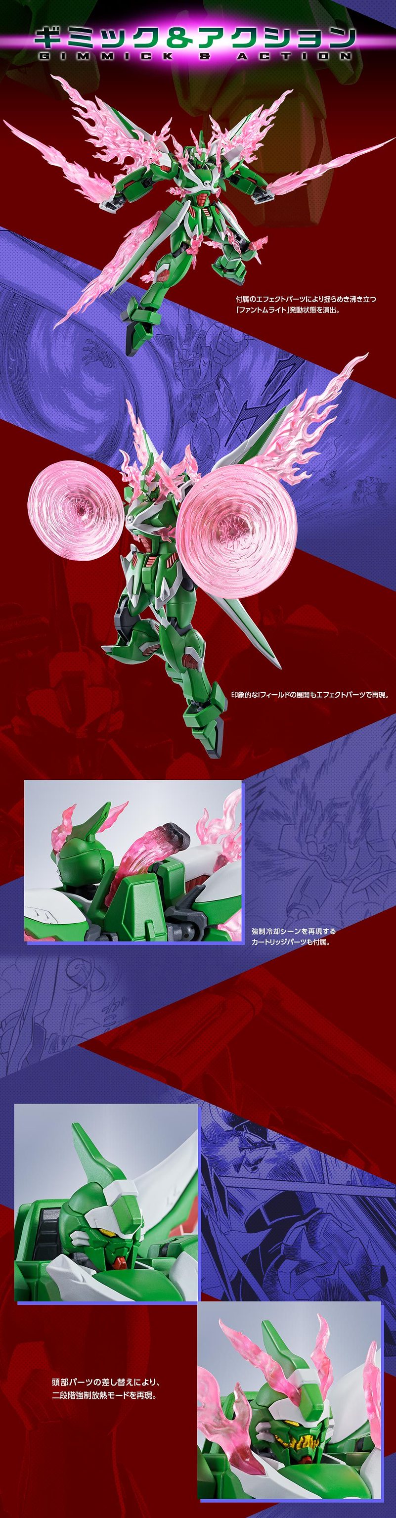 從散熱口竄出的光之翼在 I 力場的干擾下如同鬼火般搖曳,意外產生讓機體性能大幅上升的「幽靈光」、全機包覆難以接近超高熱能的粒子,能夠完全抵禦絕大部分的光束兵器。但只要產生幽靈光超過 15 分鐘便會全機過熱,後期更封印了幾乎無法使用的變形機構,實質上就是無法達到預期效果的失敗作。