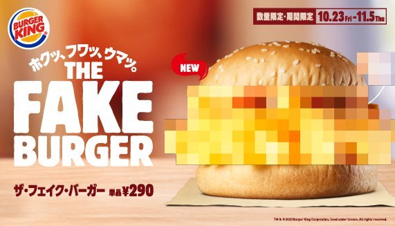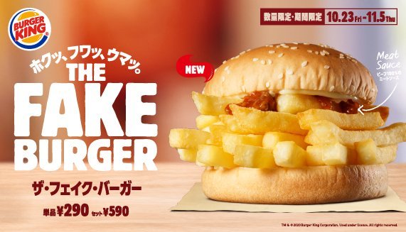 日本漢堡王限定餐點「THE FAKE BURGER 假漢堡」從2020年10月23日起開始販售,並於2020年11月5日結束。