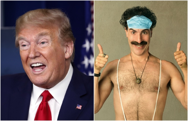 川普提到的薩夏曾想整他的事情,指的是 2003 年薩夏曾在他的喜劇節目《Da Ali G Show》上故意向川普提案一個很蠢的創業點子,但川普當時沒上當,訪談還沒結束,心覺被愚弄的川普馬上就起身走人(見下方影片) 。