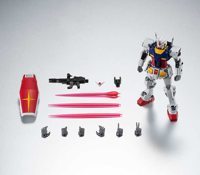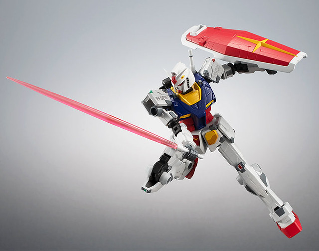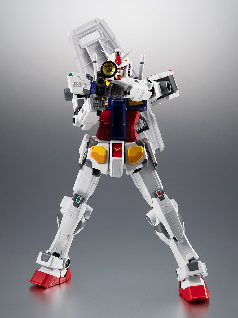 「ROBOT魂 RX-78F00 鋼彈」是高約 13 公分的可動塗裝完成品,大幅再現橫濱等身大鋼彈造型,並具備易於把玩的靈活可動關節,配件則收錄光束軍刀、光束步槍、盾牌等豐富武裝,以及多種替換用造型手掌零件。除了能夠重現等身大鋼彈透過控制系統動起來的姿態,也能搭配武裝把玩出戰鬥場景!