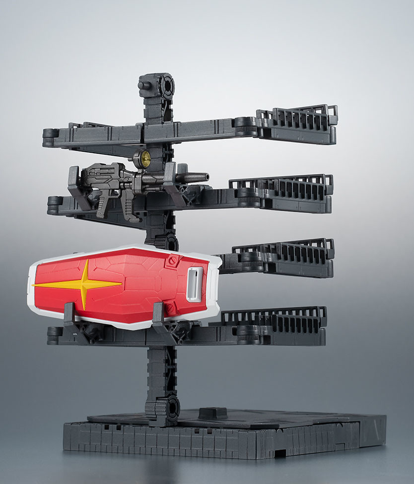 此外萬代也將同步推出對應「ROBOT魂 RX-78F00 鋼彈」的「魂STAGE ACT.G-DOCK」,並具備豐富的可動機構,還能懸掛光束步槍與盾牌,造型彷彿橫濱鋼彈格納庫的維修平台,讓你重現等身大鋼彈動起來的瞬間。