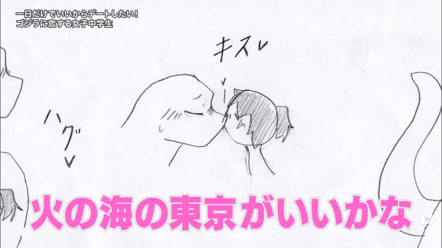 ▼少女:「哥吉拉,你喜歡我嗎?」