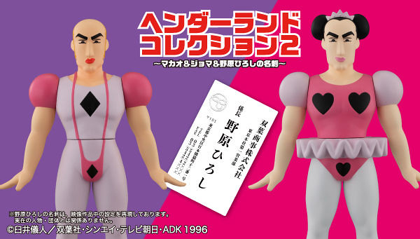 日本 BANDAI 萬代玩具公司以人氣動漫《蠟筆小新》為主題,發行極具人氣好評的「光屁屁怪獸」、「動感超人」、「康達姆機器人」與「雪人胖胖 & 多佩瑪·瑪佩多」後,再度推出以劇場版《蠟筆小新:搞怪遊樂園大冒險》為主題的第二彈商品「馬卡歐&裘馬」PVC 可動軟膠,並附有「野原廣志的名片」,參考售價為 4,980 日圓,目前已開放在日本 Premium Bandai 網站預購,預計將於 2021 年 03 月發售。