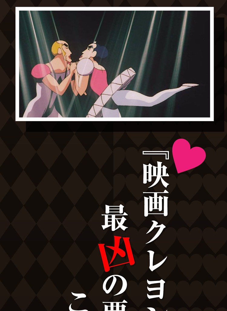 蠟筆小新的第四部動畫電影《蠟筆小新:搞怪遊樂園大冒險》(クレヨンしんちゃん ヘンダーランドの大冒険),於1996年在日本上映,故事以雙葉幼稚園到新開幕的高快樂園進行校外教學開始,與同學走散的小新,獨自闖入了尚未開張的馬戲團,為了解開咒語、阻止同性戀雙魔「馬卡歐&裘馬」征服地球的計劃,展開了現實與魔幻世界爭奪「超級無敵厲害的撲克牌」的追逐!