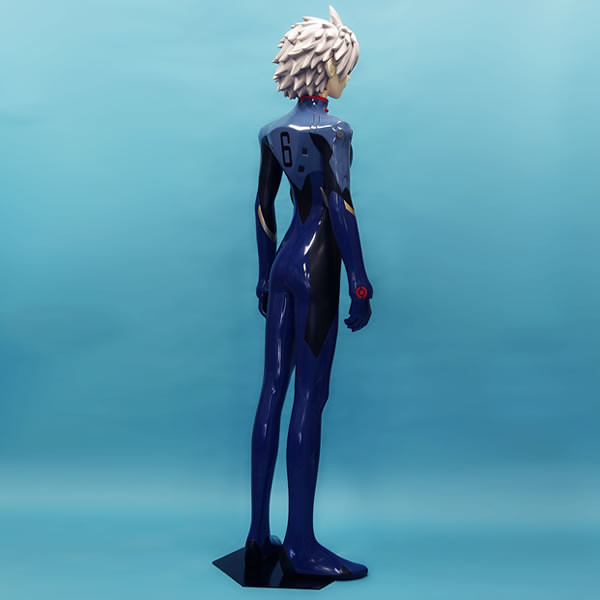 尺寸全高約160cm,寬約60cm,深約50cm,將身穿白色駕駛服,略微傾斜著身子、帶著淡淡微笑的綾波零立體化,展現苗條的身線。