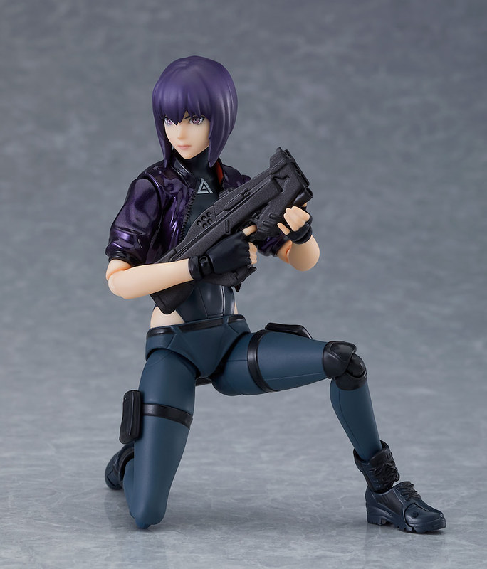 「figma 草薙素子 SAC_2045ver.」基於新作動畫重新設計的造型製作,使用珍珠紫表現夾克獨特的光澤感,附有「認真臉」、「吼叫臉」、「微笑臉」三種表情零件可替換,上半身可藉由「替換用身體零件」選擇有無穿夾克的造型,並收錄手槍、突擊步槍、多種澡型手掌配件,能藉由 figma 高度可動的靈活關節,再現少校的戰鬥姿態!