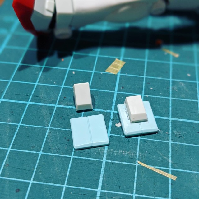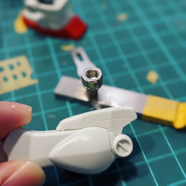 原先想用回GM的小腿但裝嵌不能,所以用EG本身膝蓋甲重新造型(註:特意買了MAD的刻線固定器 XD)