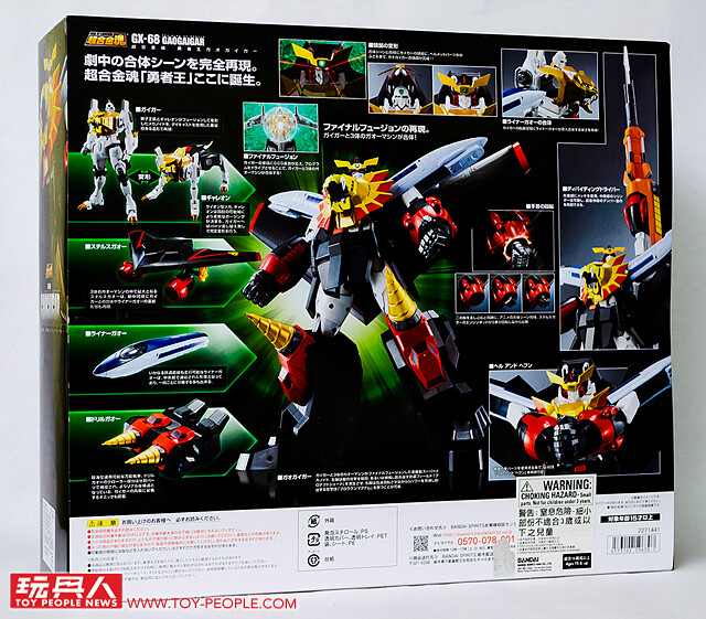 ▼ 再販版本的外盒設計與初版相同,以劇中關鍵的「G石」背景搭配合體時的關鍵台詞「FINAL FUSION 認可!」,中間放上合體後極具魄力「GX-68 我王凱牙」!
