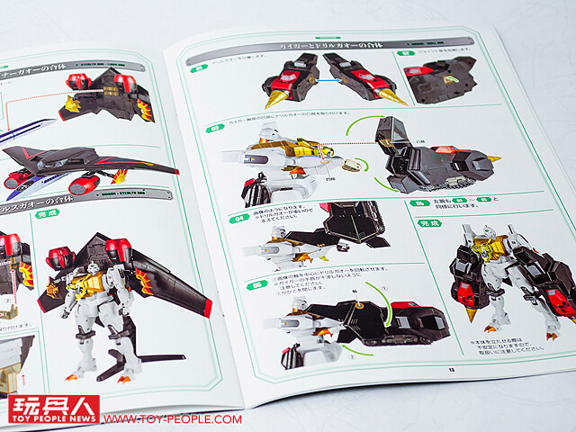 ▼ 全彩的說明書上印有各機體的詳細介紹、招式介紹與變形合體說明,質感相當不錯。