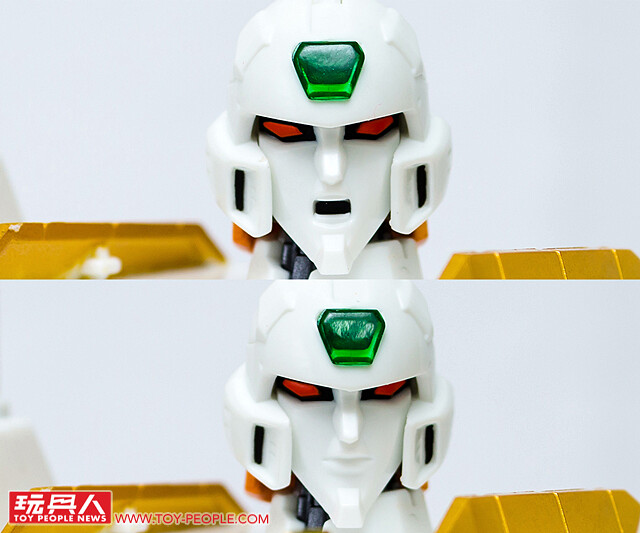 ▼ 精緻的頭部同樣使用多種金屬色塗裝,並以透明零件製作額頭寶石,不過面罩部份一樣是全白的,自行上墨線後可以更加立體。