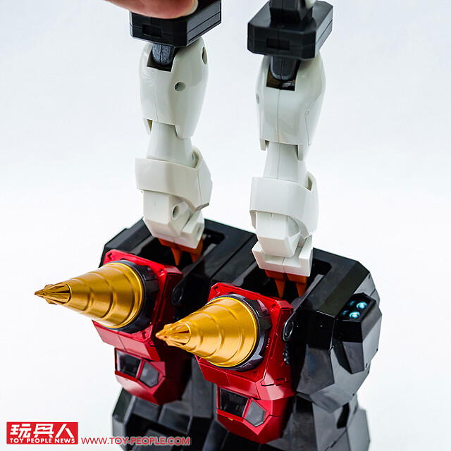 ▼ 下方腳掌部份使用大體積合金零件,把玩時的重量感極佳,合體後的下半身也相當穩固。