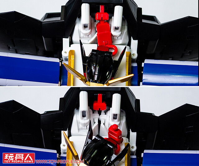 ▼ 將我王列車插入凱牙,到達定位後凱牙腰部的裝甲會自動展開,最後再降下頭部的鎖定機構,設計讓人驚豔!