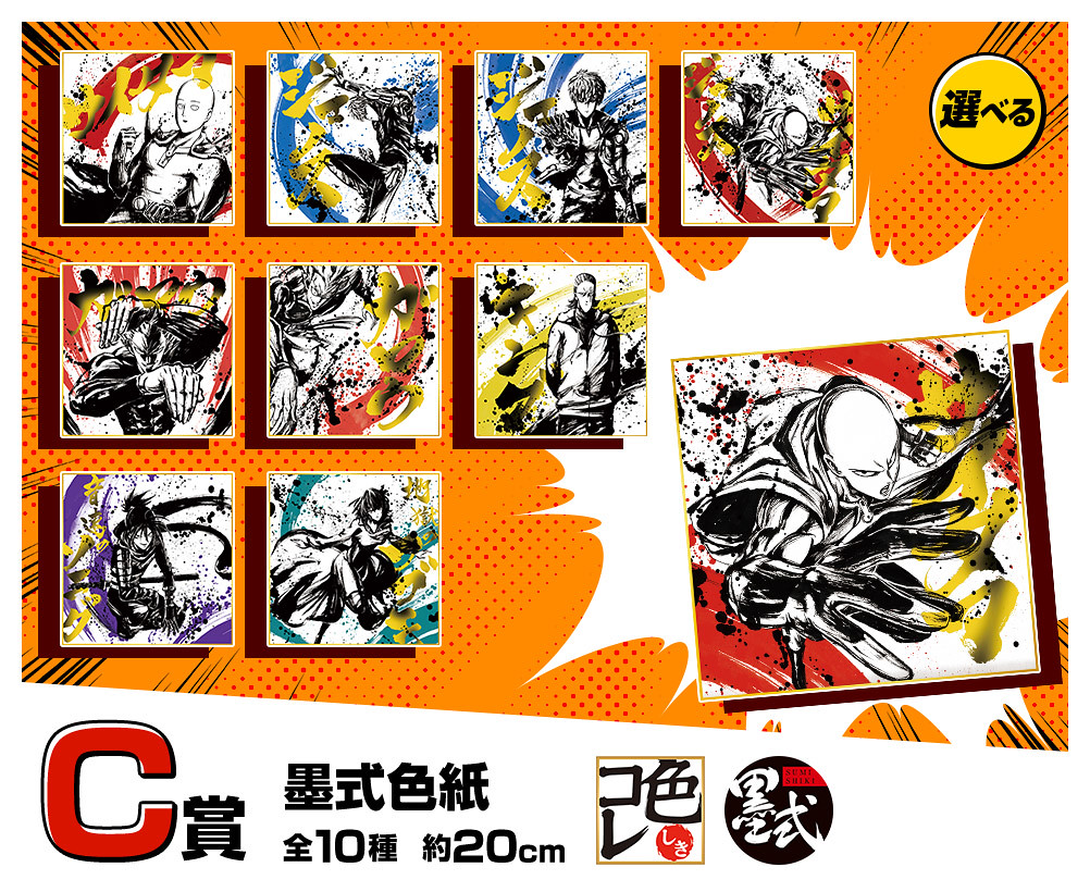 其他賞品分別為充滿帥氣水墨風格的C賞墨式色紙、D賞 橡膠吊飾、最後賞「MASTERLISE;埼玉 認真臉 最後賞ver.」,喜歡一拳超人的玩具人不要錯過啦~