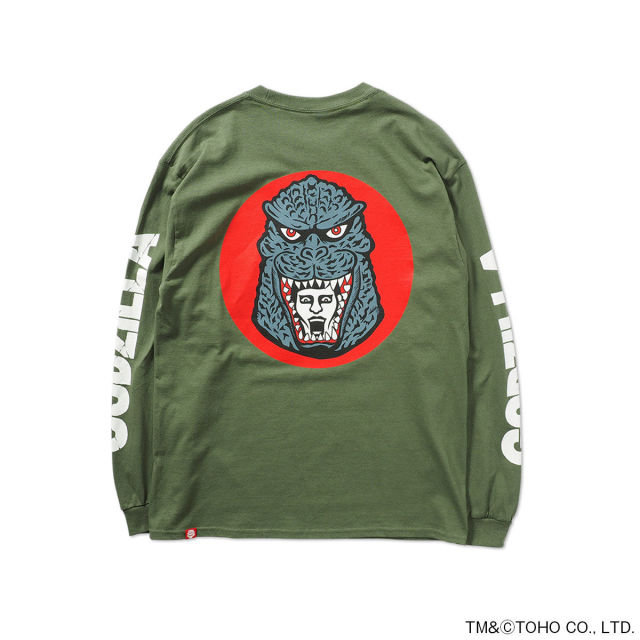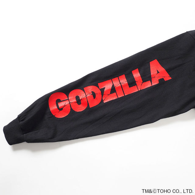 以雙袖印上 GODZILLA 大大的字樣,背後更有合作的插圖,簡單不失合作氛圍的經典款式。