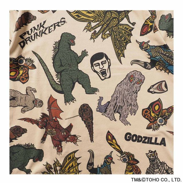 這次與哥吉拉一同推出系列服飾,PUNK DRUNKERS 將怪獸用不同於原作的方式呈現,讓怪獸變成有點壞壞又可愛的模樣。兩方聯名的經典款式我想各位不論是喜歡《哥吉拉》或是 PUNK DRUNKERS 的朋友都沒有錯過的理由啦 XD。