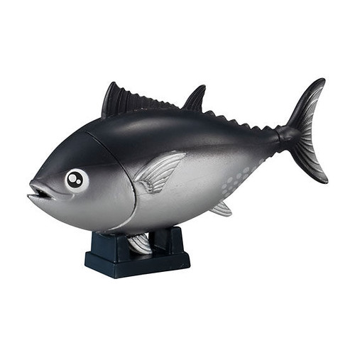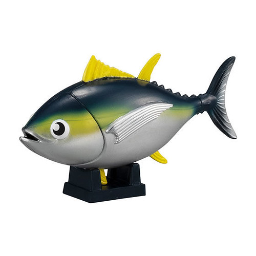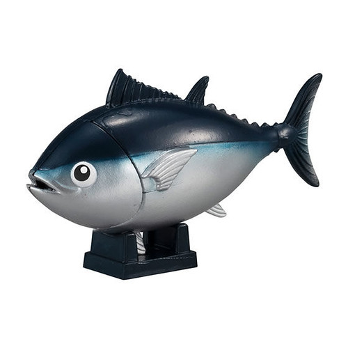 而轉蛋化的「GASHAPON 鮪魚解體拼圖」,在 67mm 小尺寸中,以 12 塊零件組成!更推出四種不同的鮪魚款式,分別為:太平洋藍鰭鮪魚/黑鮪魚 (クロマグロ)、藍鰭鮪魚 (ミナミマグロ)、短鮪魚/大目鮪魚 (メバチ)、黃鰭鮪魚 (キハダ),魚肉零件上一樣刻有該部位的名稱,並附有底座,讓玩家可以將拚好的鮪魚好好擺放欣賞唷!
