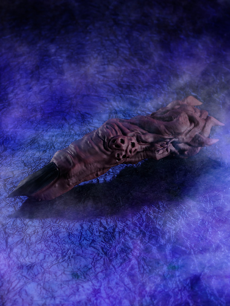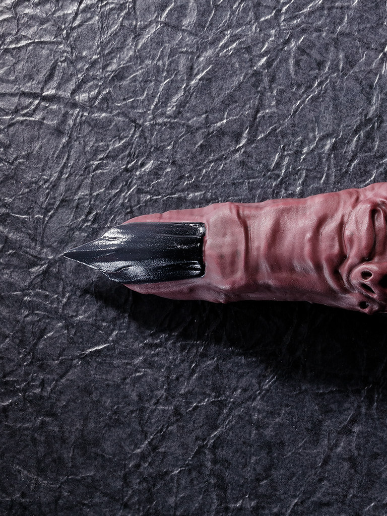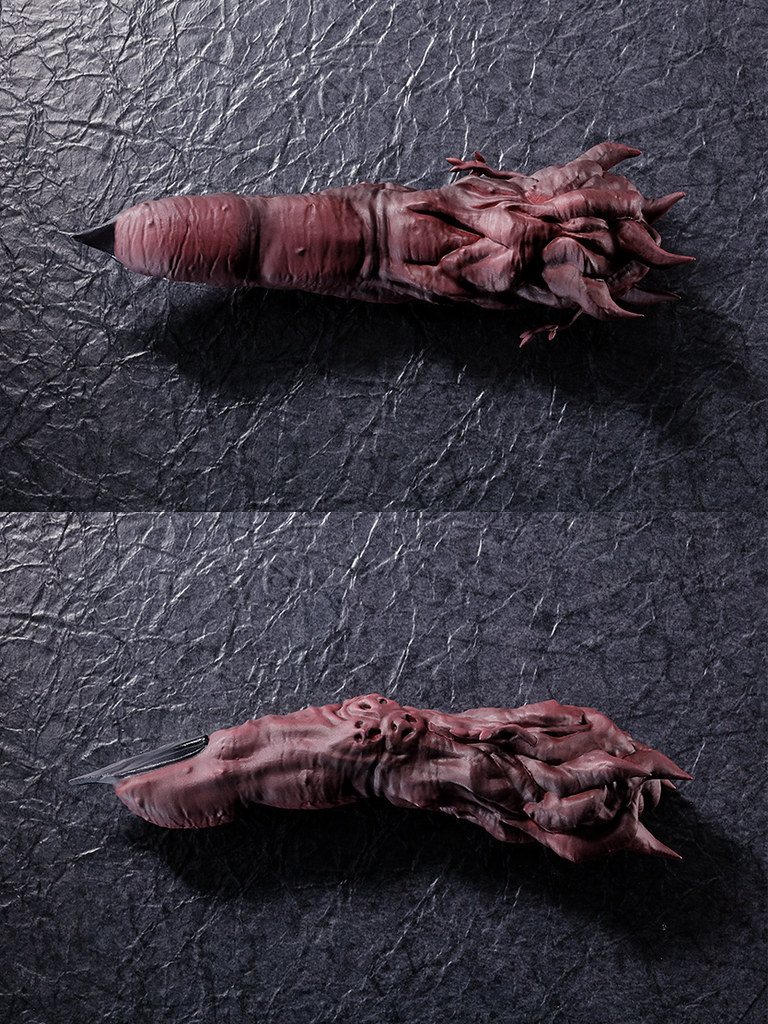 PROPLICA 特級咒物 兩面宿儺的手指,以劇中真實比例打造,尺寸全長約 120㎜,徹底還原被兩面宿儺的二十個手指被切掉、封印後分落在日本各處,經過一千年後,成為屍蠟的令人毛骨悚然造型。整體為暗紫紅的怪異色調,塗裝呈現出皮膚乾燥質感,並在指甲處施以逼真的光澤;手指扭曲詭異的皺紋和像樹根的切面處也如實還原,再現特級咒物的恐怖氣氛。越看越難以想像,虎杖悠仁怎麼有勇氣將這中東西吞下呢?XD