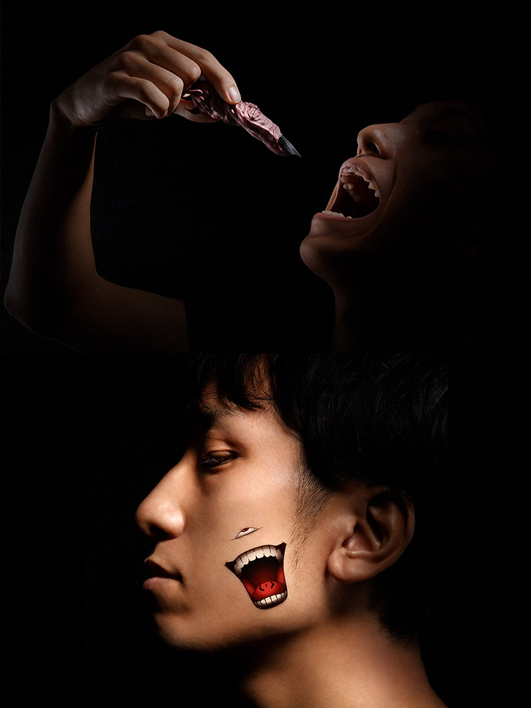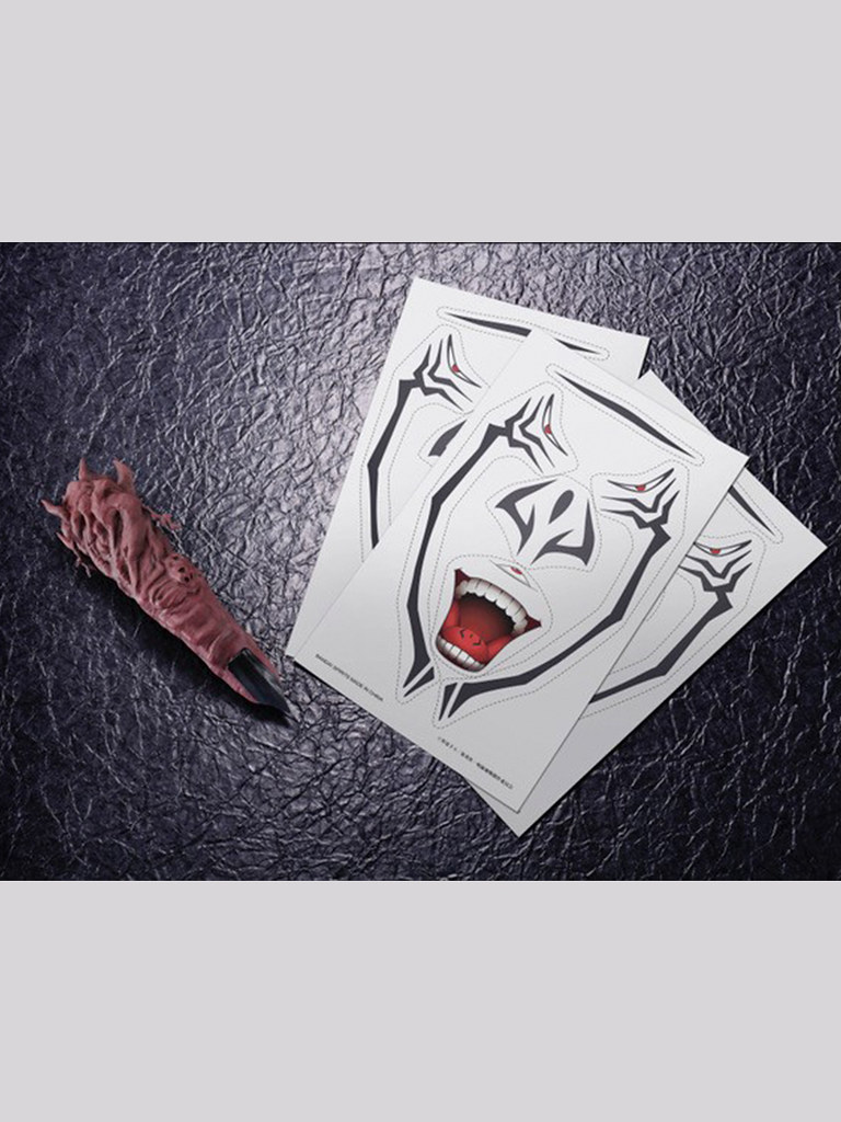 ▼另外還附有三張兩面宿儺寄生於虎杖悠仁時的造型紋身貼紙,可以重現將手指吞下肚、宿儺從臉部冒出來的模樣!