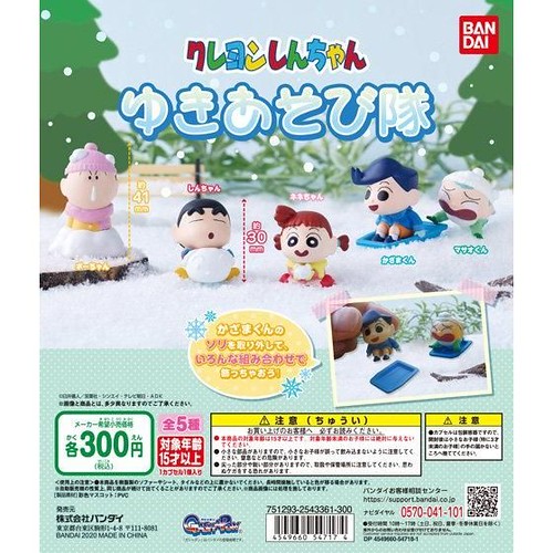 日本萬代公司轉蛋事業部「GASHAPON」在以《蠟筆小新》為主題,推出可愛又療癒的晚安隊、玩水隊後,再度發表新作轉蛋:「蠟筆小新 玩雪隊」(クレヨンしんちゃん ゆきあそび隊),一共有五款角色,每轉參考售價為 300 日圓,預計將於 2020 年 11 月開轉!