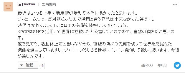 當然,眼看隔壁韓國K-POP已經成為足以帶動國際流行的影響力,而傑尼斯一直到今天才開始踏上第一步,以致也讓不少J家老粉絲表示不看好,認為傑尼斯官方的動作太遲了,若要像K-POP一樣,恐怕還得需花上一段很長的時間才能達到理想目標。
