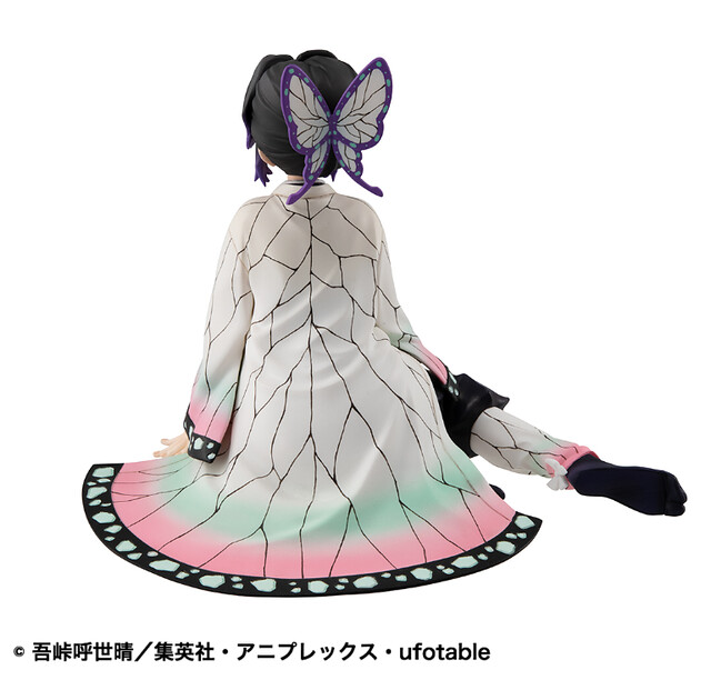 「G.E.M. 掌中的忍桑(胡蝶忍)」僅有 7.5 公分高,便於收藏更能呵護手中。在嬌小尺寸下刻劃出溫柔而神秘的微笑、特徵的蝴蝶髮飾與輕柔的坐姿,能從纖細的手指、腳掌造型感受到忍的優雅,羽織如同蝶翼般華麗的花紋也透過轉印、漸層塗裝徹底再現。