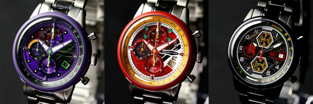 三款分別以 ( 初號機 / 二號機 / NERV ) 的形象設計,錶面上有著代表的配色,分別具有不同的味道在。三眼錶的機能性也不在話下,也具有日常生活防水,機械也採日本製的 MIYOTA 0S10。配上金屬的錶身,相信不論是日常生活配戴或是上班及出席重要場合也 OK。