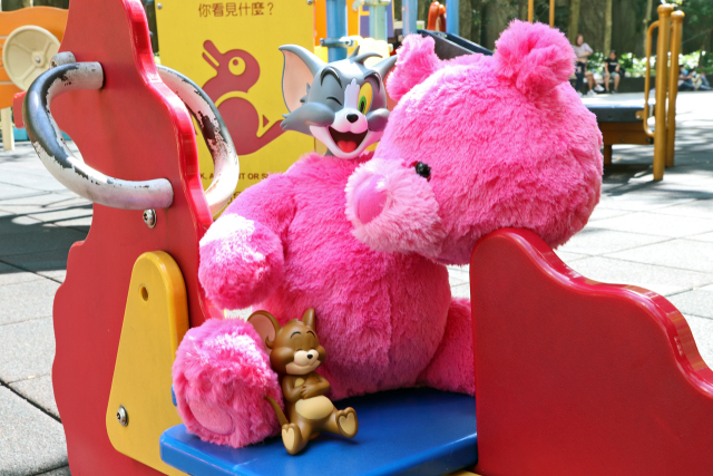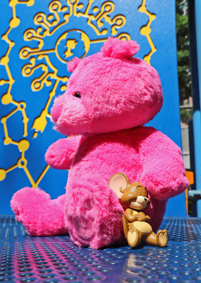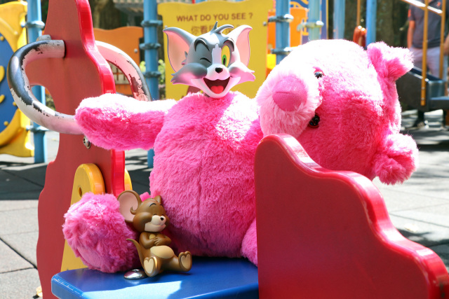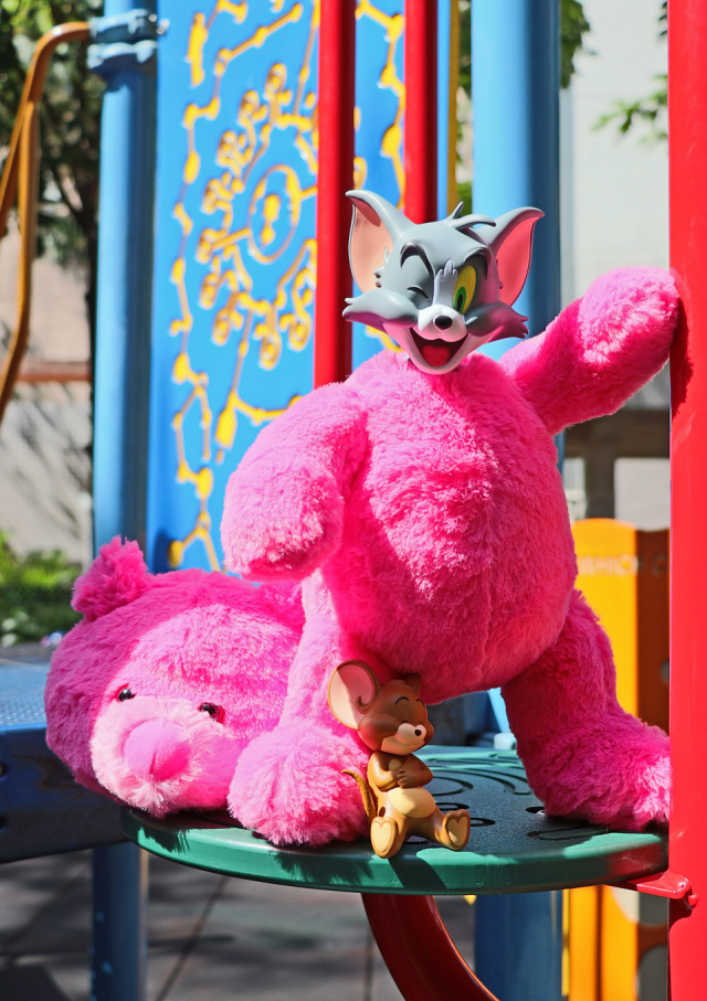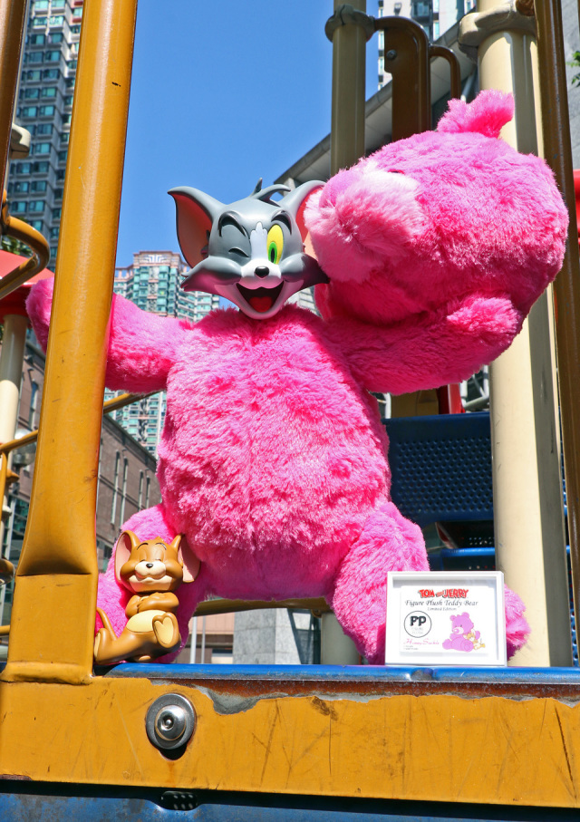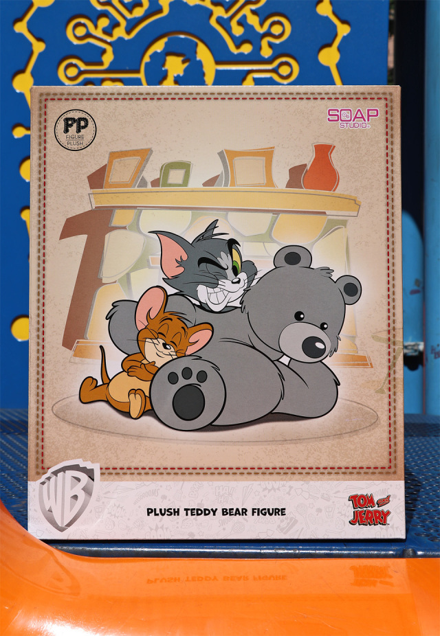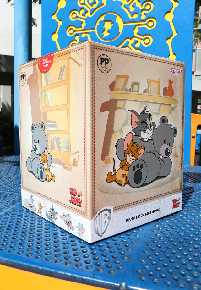 Tom 泰迪熊公仔高約 30cm,傑利鼠高約 8cm。與普通的毛絨公仔不同,Figure Plush 系列毛絨公仔內置骨架,其腰部和四肢具有一定的可動幅度,因此公仔可自由地擺出各種不同的動作造型,兼具毛絨公仔的可愛外觀與可動人偶多造型的可玩性。毛絨公仔的頭套位置由魔術貼連接,方便玩家摘取,取下毛絨頭套後,即可露出 #搪膠 製成的玩具公仔頭部。