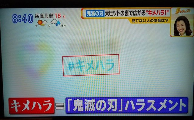 「キメハラ」是已兩個字組成,キメ為鬼滅日文前兩個字的略稱,ハラ則是來自於ハラスメント ( Harassment , 騷擾 ),已經成為日本新興的流行詞彙,也成推特趨勢。