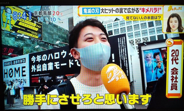 主因來自於無限列車篇上映之後,整個社會上充斥了過度推崇鬼滅的氛圍隨之而來的,造成鬼滅騷擾這種現象的擴大。因為被問到 :「你還沒去看鬼滅劇場版嗎?」等話題而感到壓力的人們正在增加。