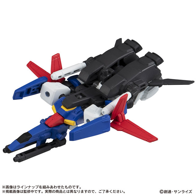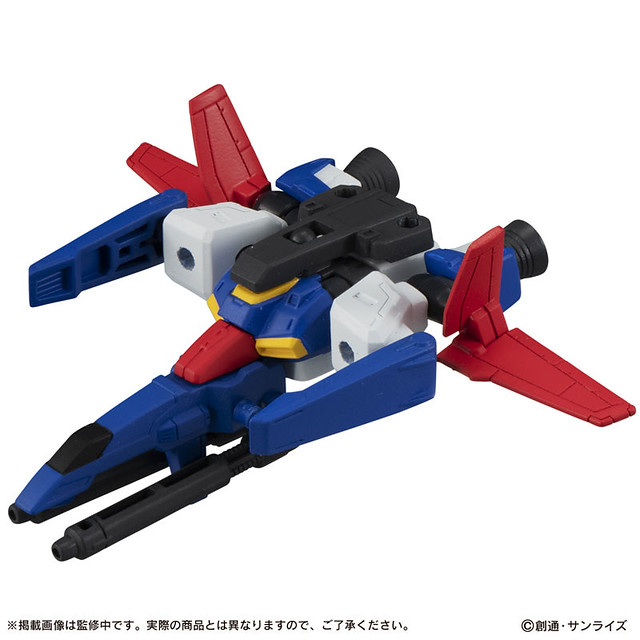 不過在模型開發初期,要怎麼將如此巨大的機體塞進轉蛋裡,讓開發者相當困擾,且每顆轉蛋內必須要有一架完整的機體,也無法直接分解成上下半身。幸好最後採用「上部核心戰機」、「基部核心戰機」形式推出,轉出兩架機體後就能合體為 ZZ 鋼彈。或許是因為這樣,17 彈從平時的 5 種類增加到 6 種類(5種機體+MS武裝組)。