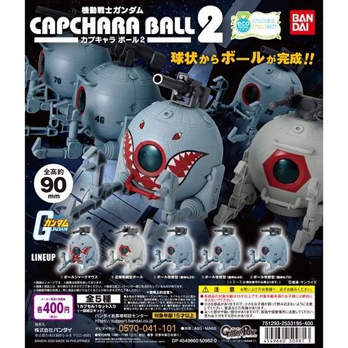 由日本萬代玩具公司轉蛋事業部 GASHAPON 推出,將轉蛋殼設計成玩具本體部件的人氣商品『CAPCHARA(カプキャラ)』系列,即將於 2020 年 11 月第一週推出《機動戰士鋼彈》最新作「機動戰士鋼彈 CAPCHARA 鋼球2」,參考售價各 400 日圓(含稅)。
