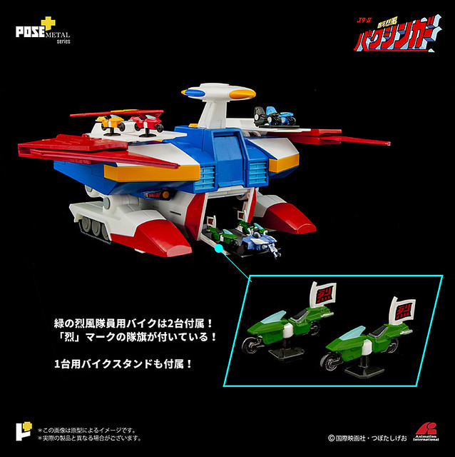 製作過數款機器人玩具的香港玩具品牌「POSE+」旗下之 METAL SERIES 系列又有新作要推出,是對應之前曾經推出過的《銀河烈風》(銀河烈風バクシンガー)之巨大機器人「幕臣我」的後備支援機組「移動基地」(バクシンバード)!其編號為 P+02B,預定在 2021 年 3 月推出。