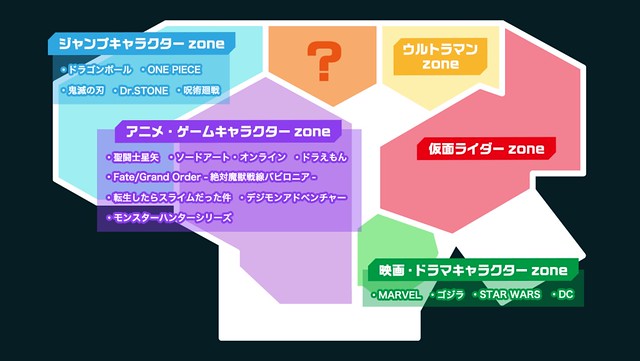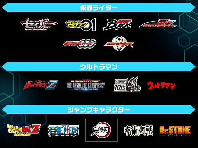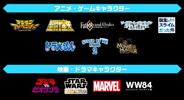在「FIGURE EXHIBITIONS」區域主要以 S.H.Figuarts、S.H.MonsterArts、Figuarts ZERO ...等角色模型系列為主,包含《鬼滅之刃》《七龍珠》《航海王》《FGO》《假面騎士》《超人力霸王》《MARVEL》《星際大戰》《DC》《哥吉拉》......等人氣作品。
