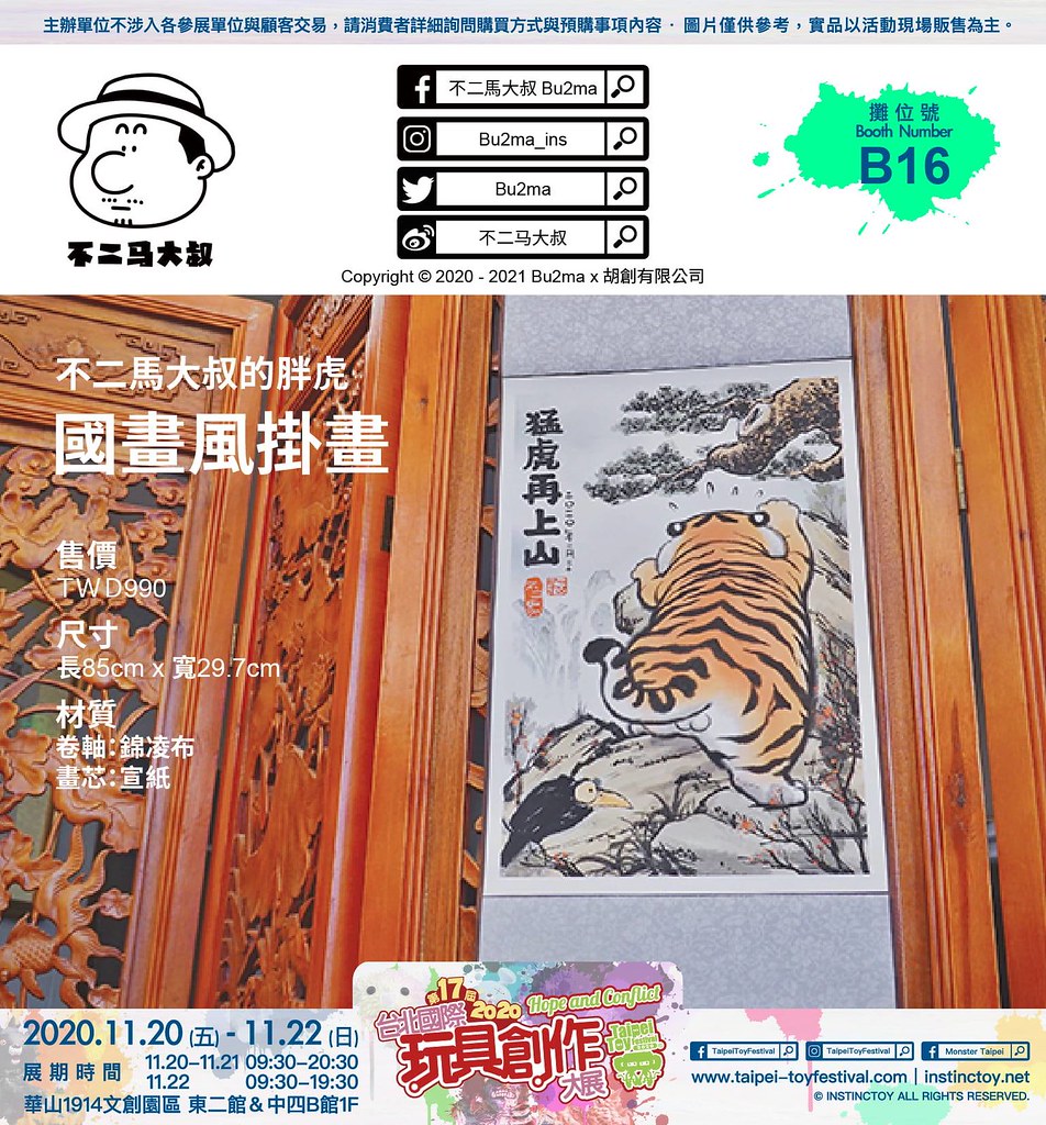另外還有帶來三種款式的「鱷胖了」實心樹脂公仔,會場價每款 NT$1480 元!以及胖虎的國畫風掛畫,每款 NT$990 元,都是數量有限、售完為止,各位喜歡不二馬的玩具人請把荷包準備好囉!