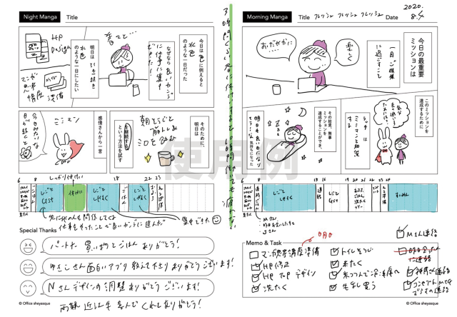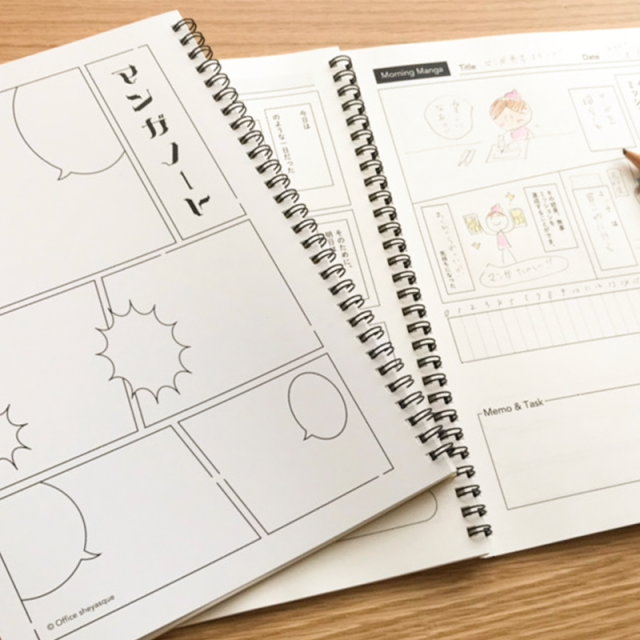 而或許為了讓紀錄事項/筆記這件事不再枯燥乏味,在日本一家網購平台sheyasque.stores就推出了一款以漫畫分鏡為特色的「漫畫筆記本」,你不僅可以在上面書寫,更可以配合紙本上的分鏡,來畫出你必須要完成的每日目標,更可愛的是頁面上也不忘設計出幾個漫畫對話框,來讓你的「故事」更加地生動有趣。