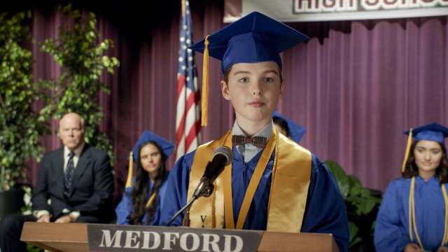 目前《宅男行不行》的官方臉書粉絲專頁放上了一段影片,內容描述的是謝爾頓的高中畢業派對,他媽媽邀請了奶奶、哥哥、妹妹、奶奶的男朋友戴爾一同慶祝。