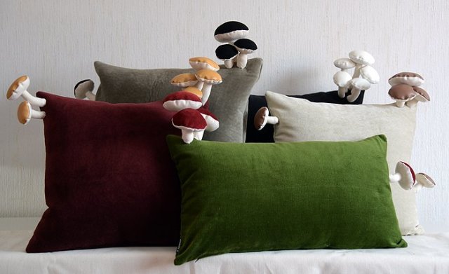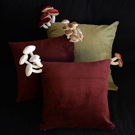 這是名叫 fungimaa 的芬蘭品牌推出的靠枕,專門販售香菇相關的周邊商品,吸引了不少「香菇」粉絲愛戴。可以看到各種尺寸的靠枕都有,共同點就是邊角都有小小的香菇,莫名的惡趣味讓人不禁發笑。