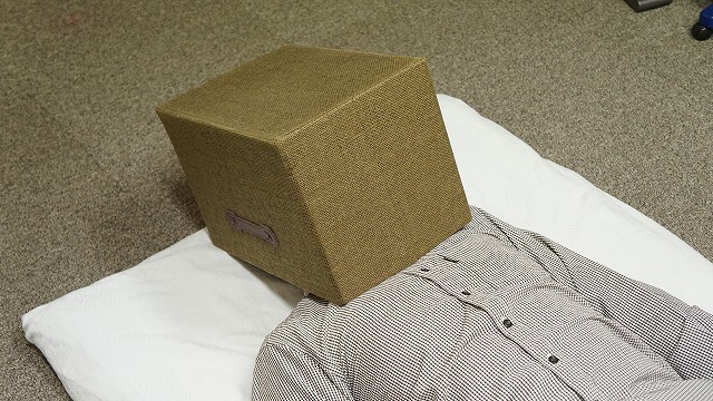 再來是一般人拿來收納用的仿竹編箱子,推主表示可以有效遮蔽光線,透氣度也不錯,不過稍微重了一點,睡了一次覺得頭有點不舒服 ( 到底哪來的想法用這個阿 XD )。