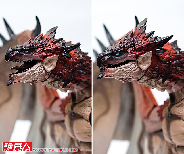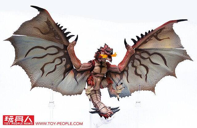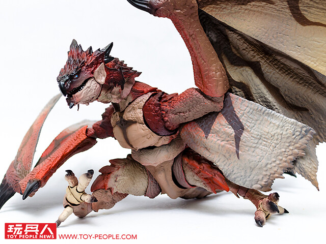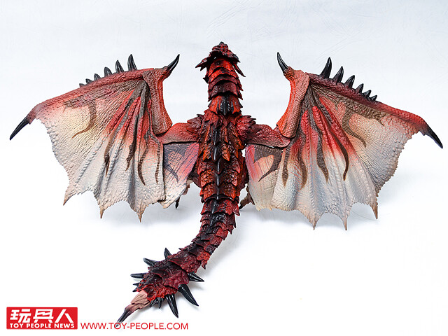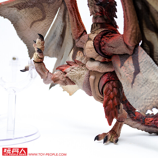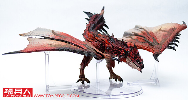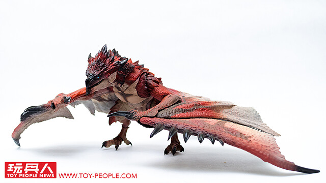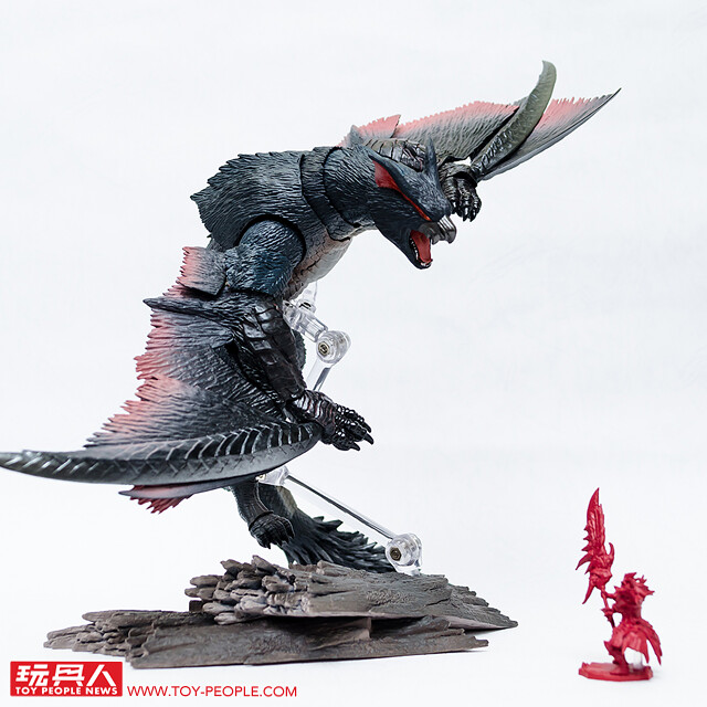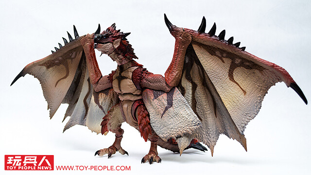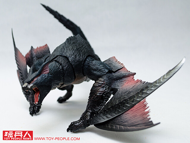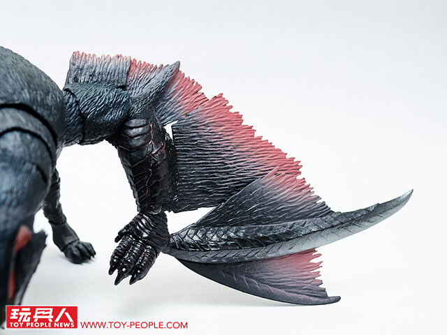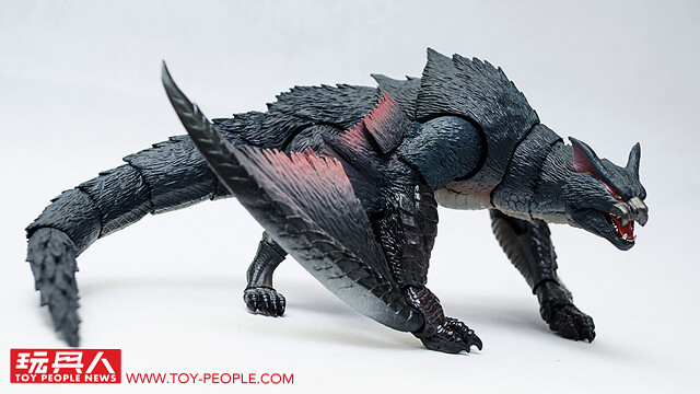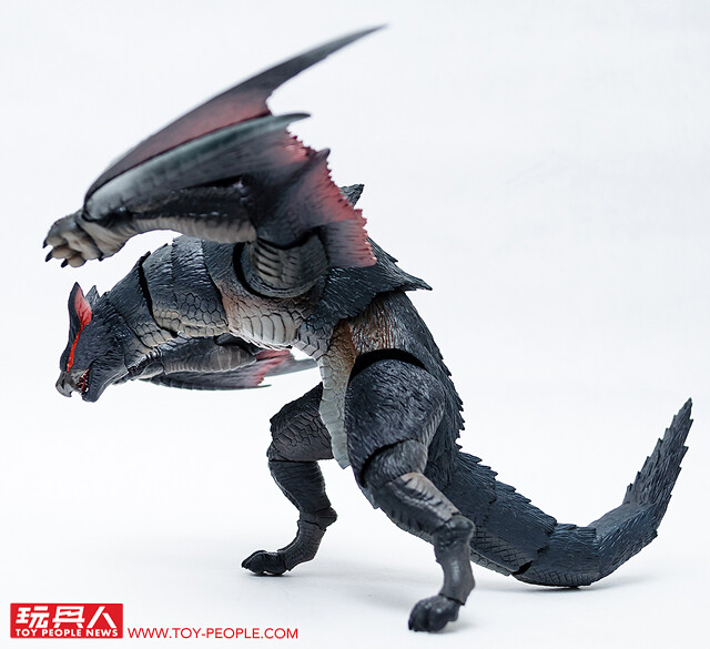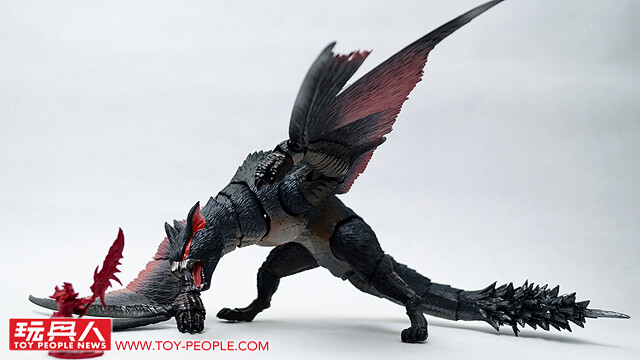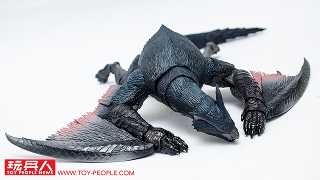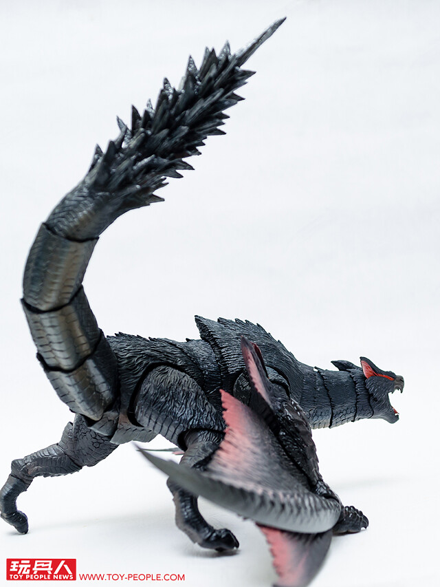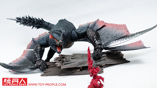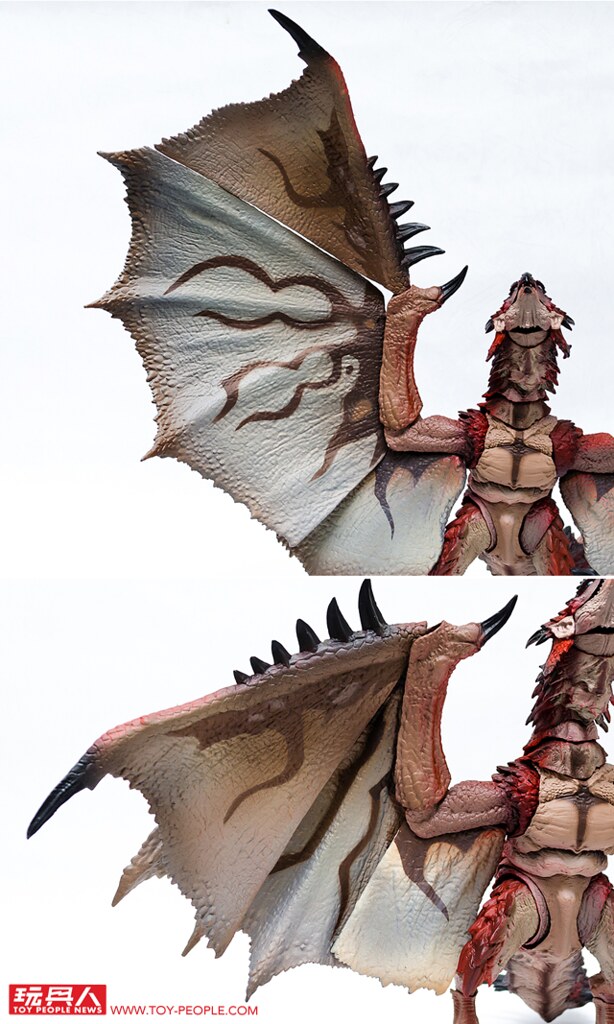 ▼ 造型同樣由《魔物獵人》系列導演藤岡要完全監修,從翼膜的花紋與皺摺、全身粗糙的鱗片、頭背尾等多處的黑色硬棘都徹底還原遊戲中的造型,整體比例、體型都相當帥氣。