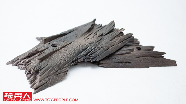 ▼ 木頭底座有著相當寫實的質感,上方左右各一個洞,能夠裝上可動支架。