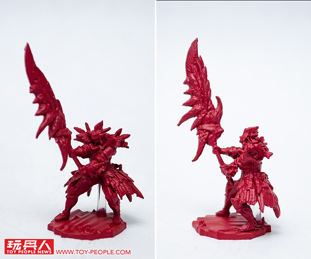 ▼ 特典的火龍套裝大劍獵人差不多和迅龍同比例,一同擺設能再現緊張的狩獵場景。不過人偶的成形色為單一紅色,有塗裝經驗的玩家可以自行上色!