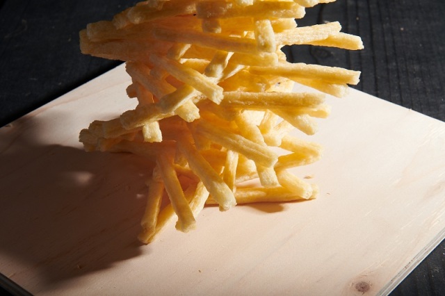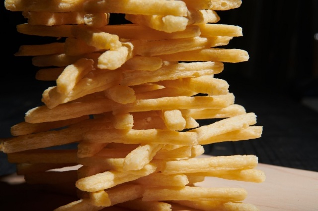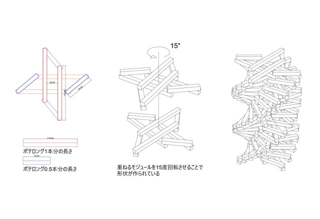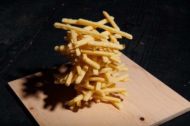 這是由日本屢獲獎項殊榮的建築師秋吉浩氣所製作的作品,僅使用森永的薯條餅乾「ポテロング」,甚至不使用黏著劑就完成。作者表示這是透過結構的方式建立起來的,其實只要了解立體結構的邏輯,一根根堆疊起來就能穩穩牢靠。