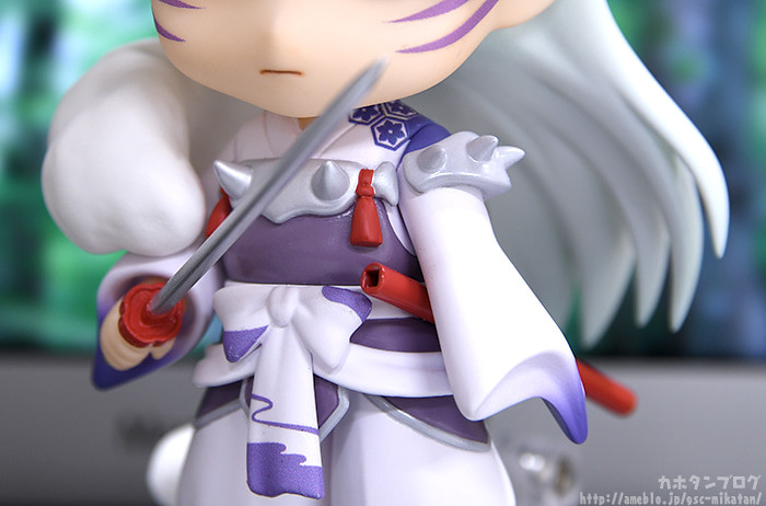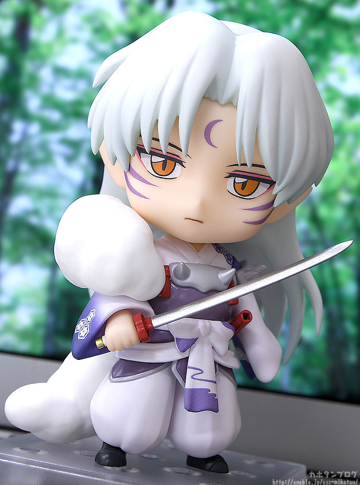 「黏土人 殺生丸」,尺寸約高 10 公分,將動畫中的造型如實還原,包含臉上的月牙和妖紋、精緻貴氣的雲狐裘,肩上蓬鬆的毛皮(腋毛)胸前與手臂上的防護裝備、花紋與流雲圖樣等皆細緻呈現。替換表情零件有沉著冷靜的「普通臉」、銳利眼神的「戰鬥臉」、凜然的「斜看臉」。