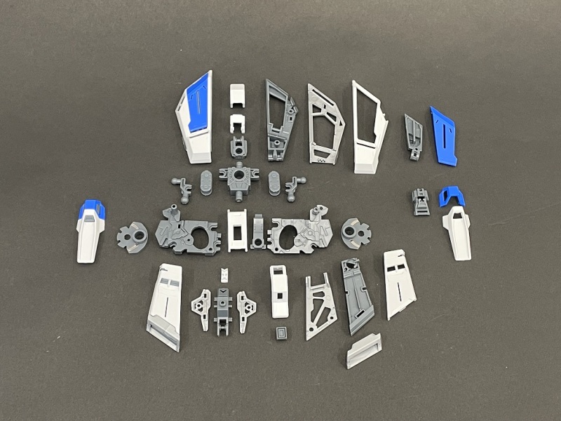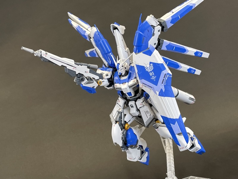 從最新公開的試作品官圖可以看見,套件擁有 RG 系列強大的分色分件,素組便能構築出色彩與層次豐富的裝甲造型,呈現 Hi-ν 鋼彈厚重帥氣的形象。而翼狀感應砲採用的「Advanced MS Joint」骨架則沿用 RG ν鋼彈的出色設計。