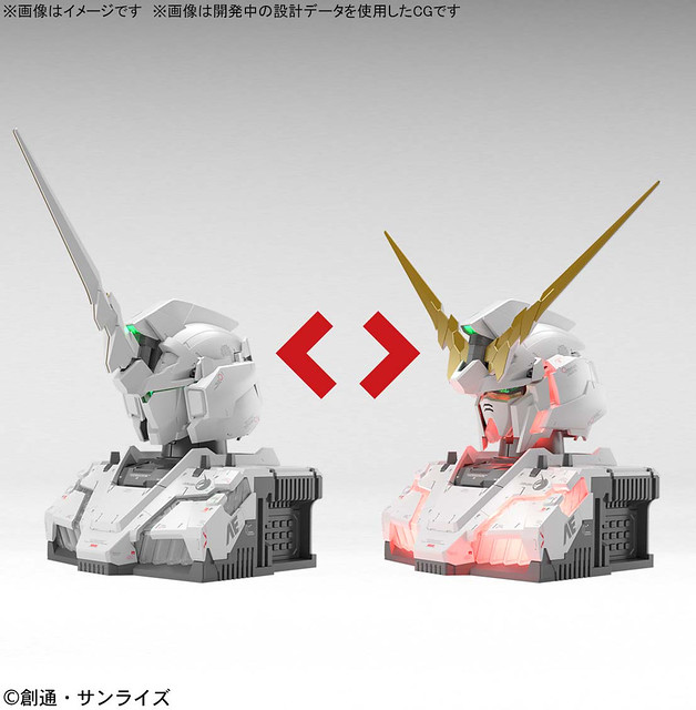 鋼普拉 40 周年全新試驗商品,挑戰鋼普拉未來多樣化的可能性之獸,搭載「自動變形」、「發光機構」、「劇中配樂播放」等機能的獨角獸鋼彈胸像!