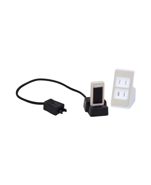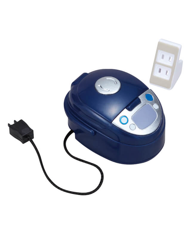最大的電鍋尺寸到 28mm,每一款電器皆有附插座,在外觀設計也有足夠的仿真,並且在塗裝上也是很有誠意的珠光塗裝,另外還包含:熱水器的蓋子可以打開、手機與充電器可以分離等設計,喜歡電器與插座(?)的玩具人可以參考~