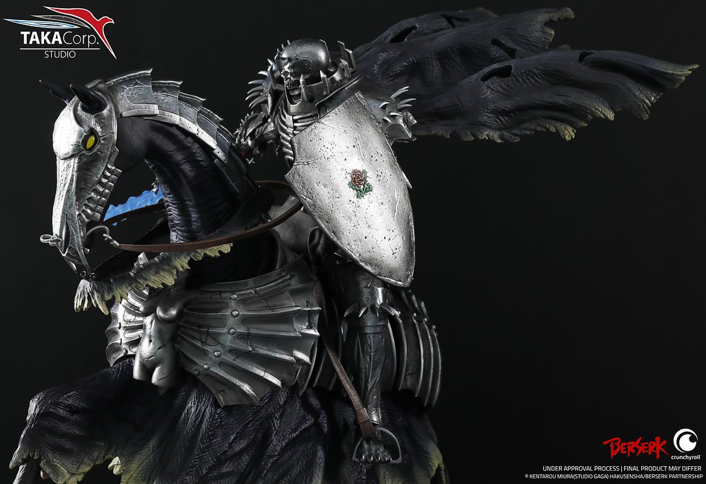 法國專門製作日本電玩動漫作品的獨立工作室 Taka Corp Studio ,將以暗黑奇幻作品《烙印勇士》為主題,推出全球限量 400 體的「骷髏騎士」1/6比例雕像(Berserk Skull Knight),大魄力的場景震撼人心!參考售價為 799 歐元,預計將於 2022 年第一季發售。