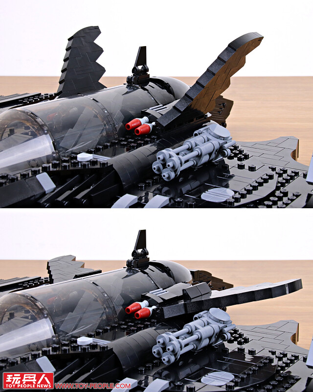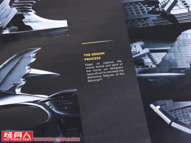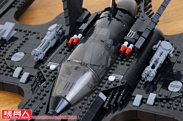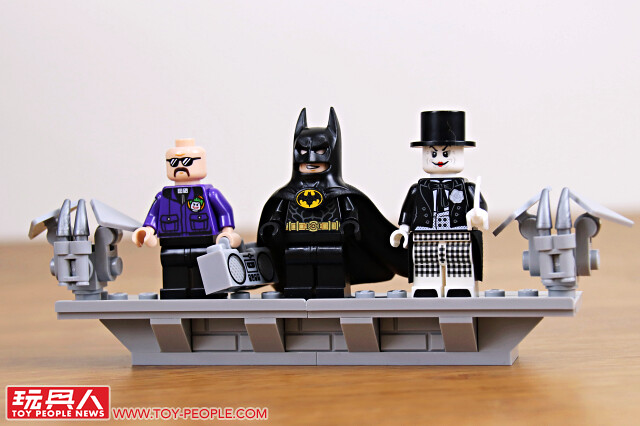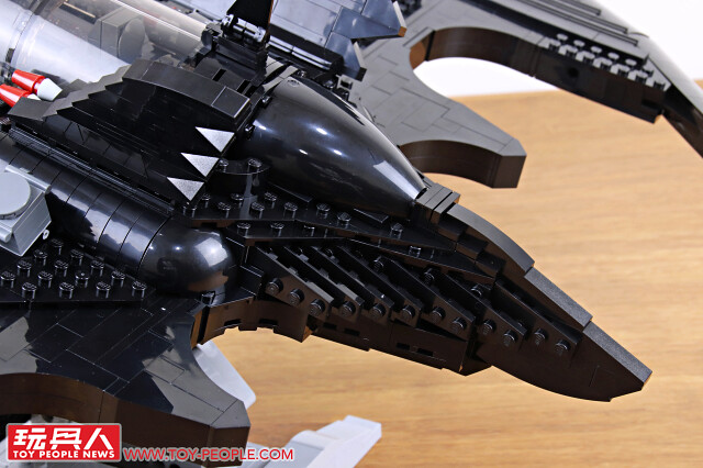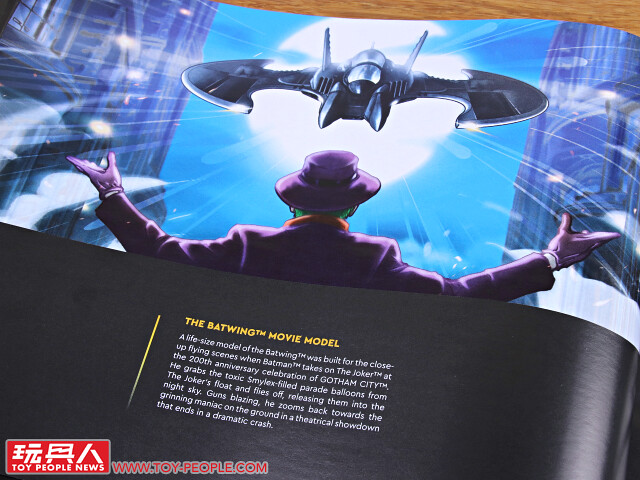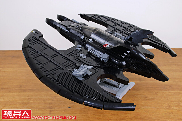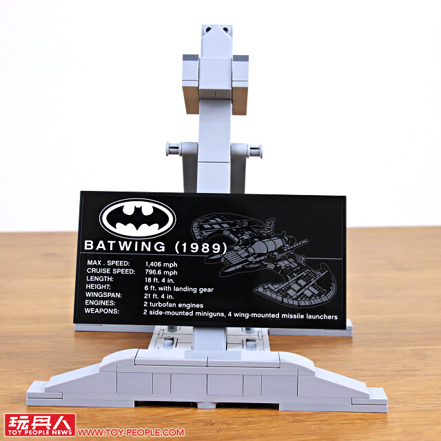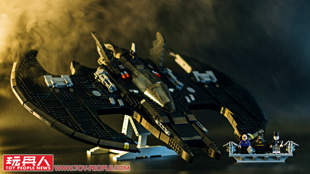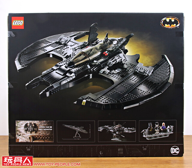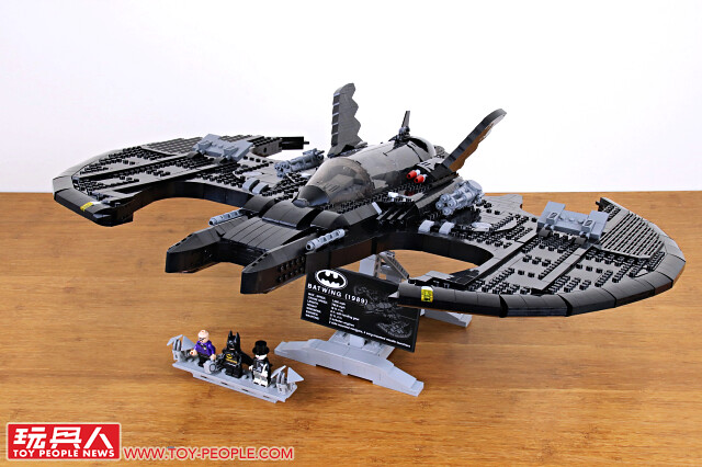 在 1989 年的《蝙蝠俠》電影後段,小丑以漫天飛舞的鈔票將大批市民吸引到廣場、並準備利用大型氣球散播毒氣攻擊,蝙蝠戰機就是在此時帥氣登場,不僅夾斷氣球,還與月亮重疊造就了彷彿超大型蝙蝠探照燈投射夜空的經典場面,只不過最後戲劇性地被小丑的左輪手槍命中墜毀;本作零件數達到 2363 片,構成了尺寸、擬真度都相當驚人的蝙蝠戰機本體,以及支撐戰機的連名牌支架與人偶,另外,還可以藉著特殊零件將蝙蝠戰機掛在牆上展示,趕快來看看吧!